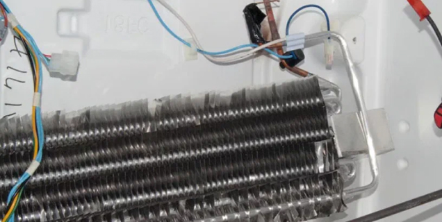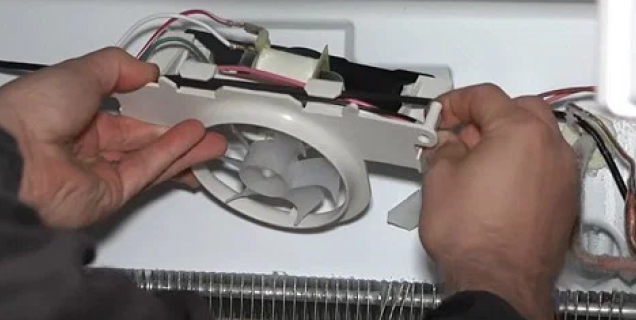 - внутри или за панелью No Frost явный лёд, вентилятор скрипит или не вращается;